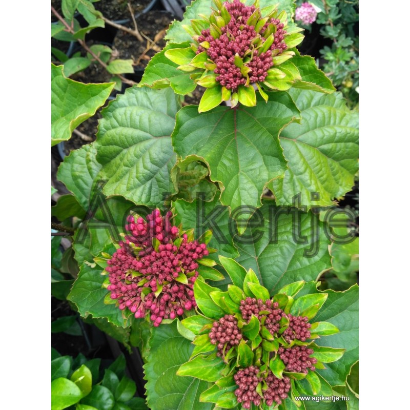1-1,5m magasra növő bokor, haragoszöld, szív alakú levelekkel, melyeknek erezete, sőt hajtásvége is bordóvörös.