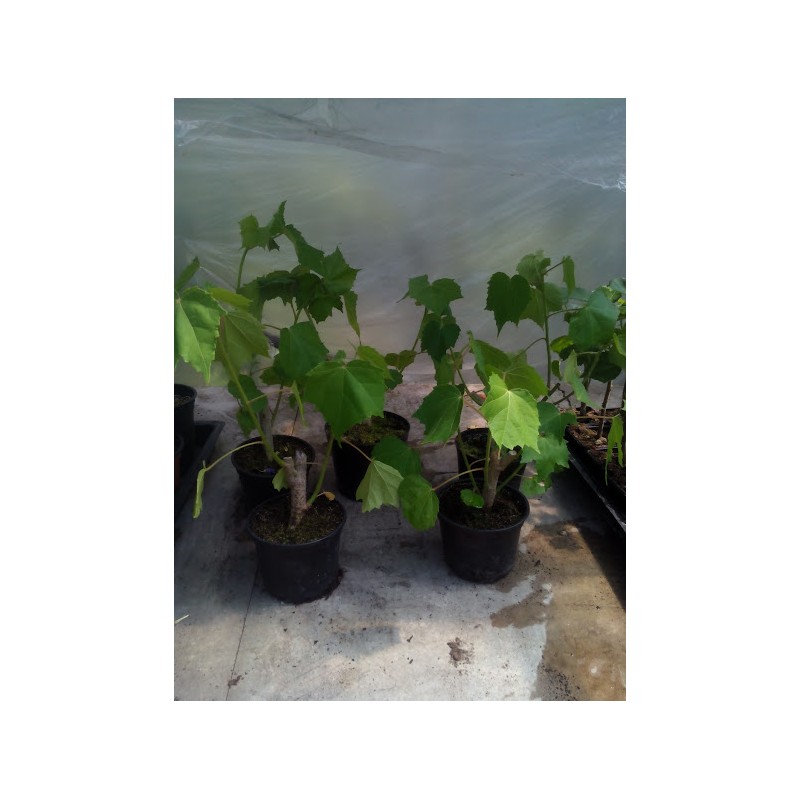 Hatalmas, fűzöld levelei szépen karéjosak,formája hasonlít a juharfa leveléhez. Puha, molyhos tapintású.