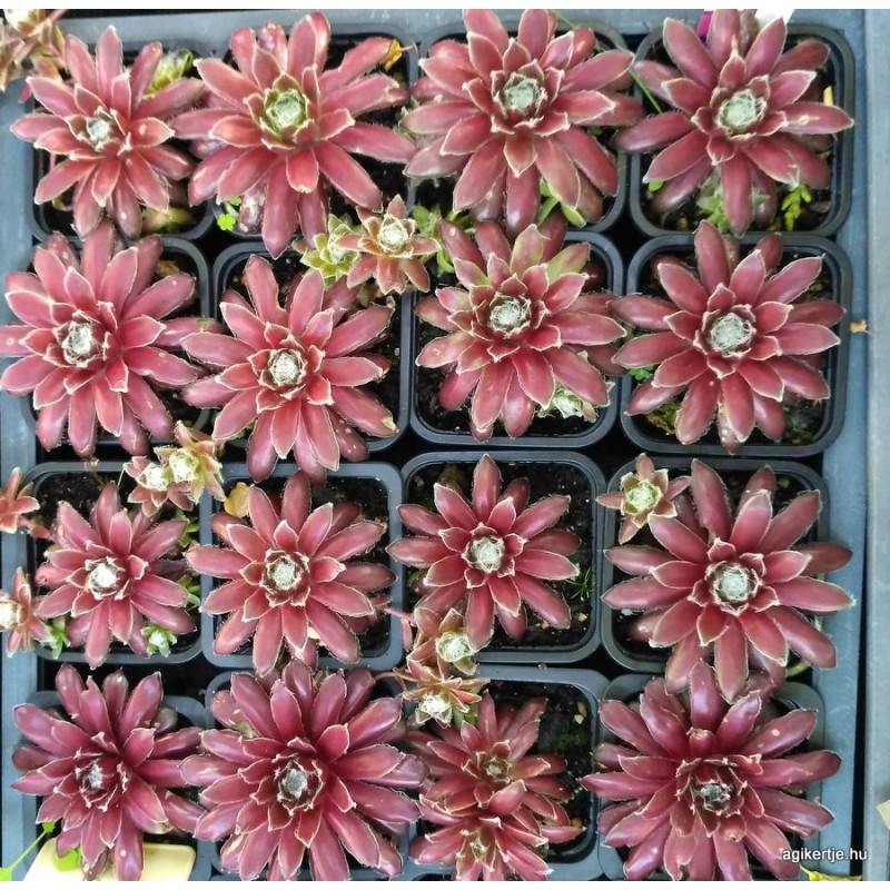 19 - Kövirózsa - Vörös, fehér szőrös szélű - Sempervivum