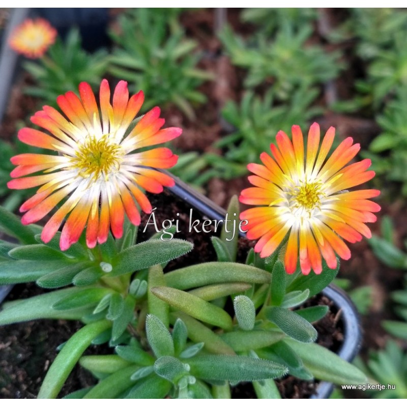 Egyszerre vörös, narancs, sárga és fehér színekben pompázik ez a különlegesség. Egész nyáron virágzó, kompakt, lassan terülő habitus. Magassága: 5-8cm Terjedése: 30cm