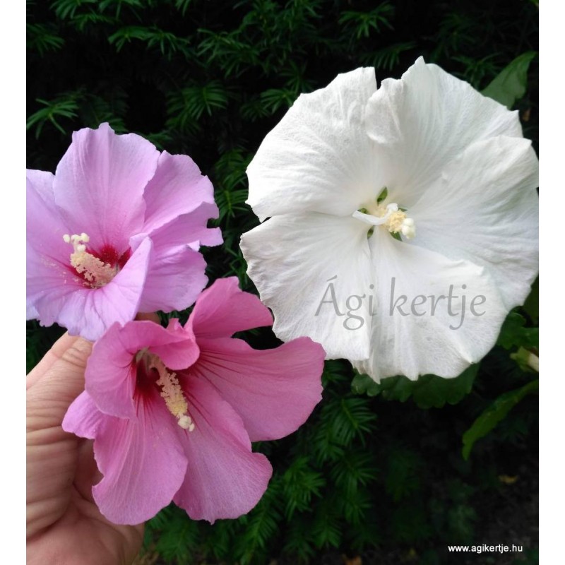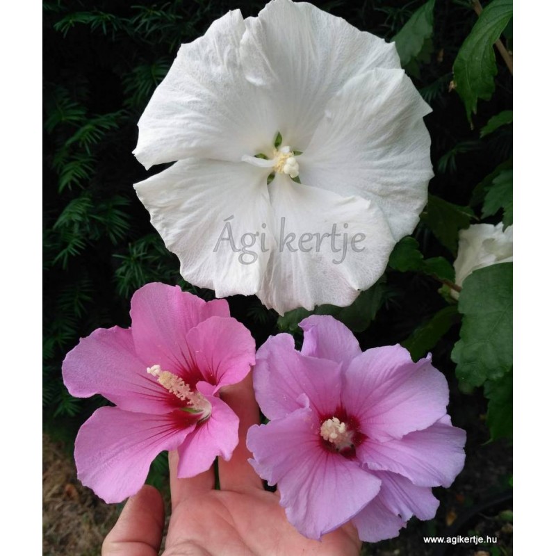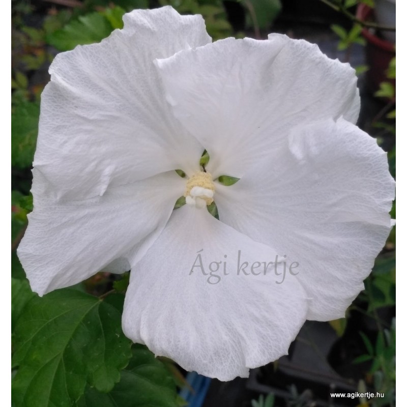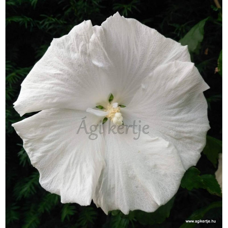 Nem tölcséres a virág, mint általában a kerti mályvacserjéknek, hanem laposan szétterülő.