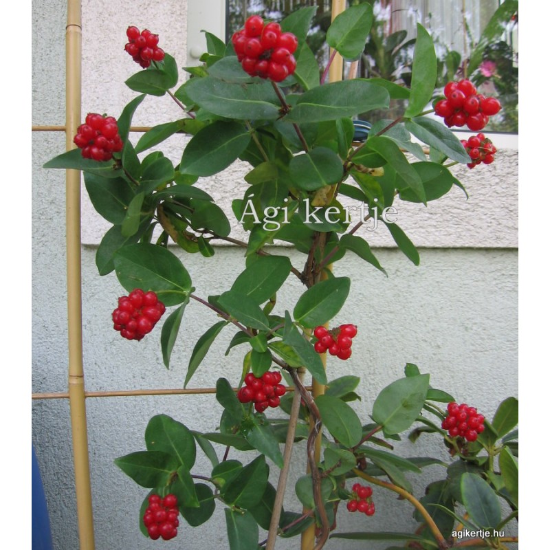 Augusztustól késő őszig piros bogyós termése is szépen díszít, madarak csemegéje.